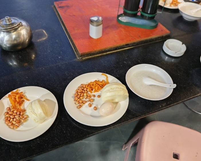 早上的早餐,很简单,主要是补充能量。不知道什么原因,有些盘子里的鸡蛋不见了,或许被其他人拿走,作为重要的蛋白质来源,鸡蛋必不可少,再去后厨要。