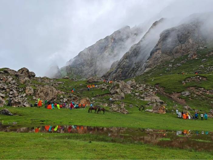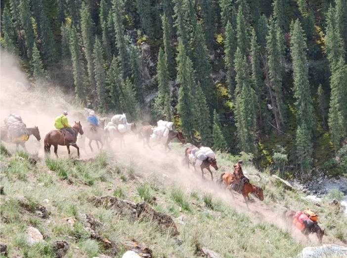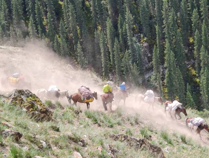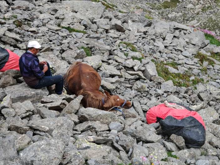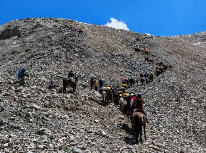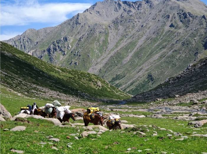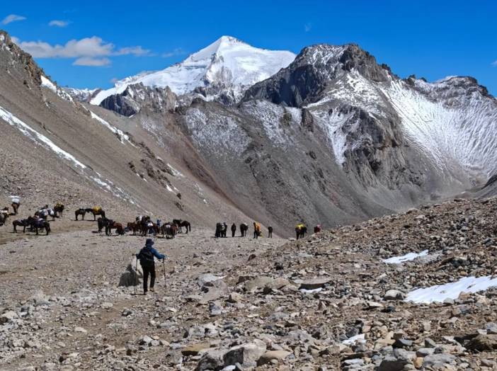 路上遇到了很多小白,而原因在于,有骑马的选项。也就是说,全程骑马也是可以的,骑马一天500元。所以一些团队可能不要求体能,只要想走就让参加。但是骑马是有一定风险的。我亲眼看到一匹马(驮的行李)在翻越达坂时没走稳翻滚了几下,然后就被放弃了。