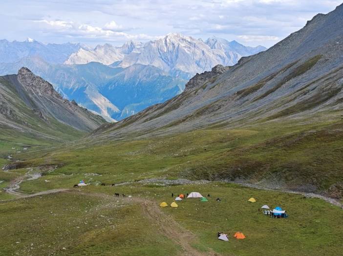 我们的保障是非常充足的,有休息和吃饭的大帐篷(其实晚上也可以睡里面),每天晚上至少四菜一汤(很多时候都是超标的),吃的可以说是非常好了。每天早晚会给大家烧水,凉的热的开水都有。主要的行李都由马帮驮着,每人背一个20-35升的小包即可。行李建议装驮包里,买个驮包比大的登山包便宜太多。