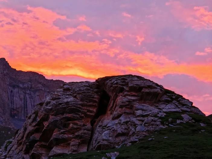 吃完饭以后,天竟然放晴了,出现了日照金山,继而出现了晚霞,晚上还有星空。