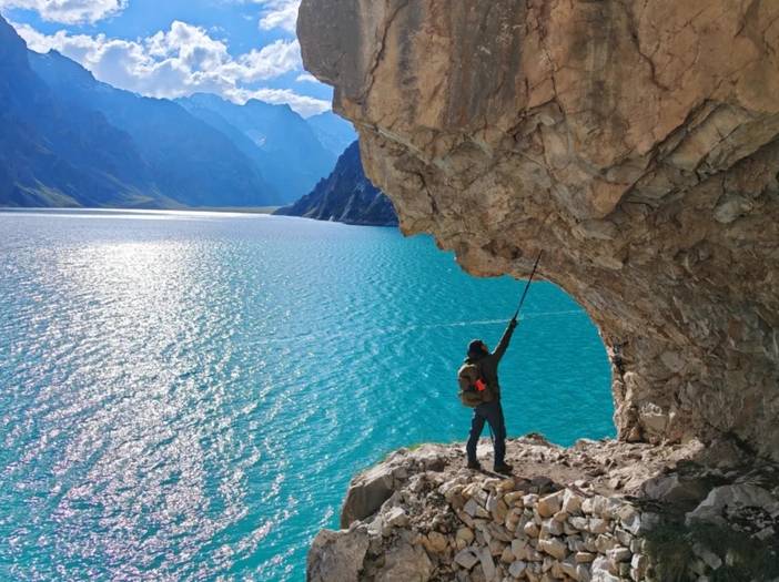 我们今天的营地就在湖边,第二天要绕着湖走,并路过老虎口,所以当天并没有往湖的其他方向走。