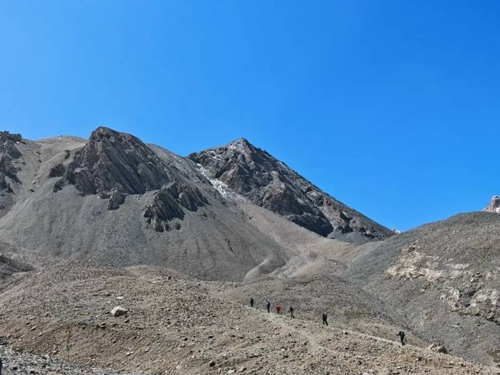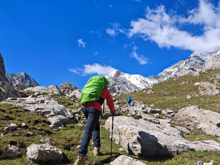 当天徒步距离15公里左右,拔高超过1000米。在营地部分人有轻微高反。前队5点左右到达营地,后队7点半到达营地。