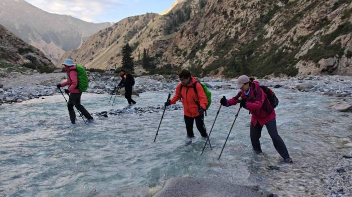 乌孙徒步的强度是有的,6天大约110公里。但是实际强度低于我的预期。我认为,有过武功山反穿徒步经验,且装备合适的情况下就可以走。如果你走过五台山等,也不会感觉乌孙的强度很大。我们每天到达营地的时间,早的话是3点多,晚的话7点多,每天的时间相对是宽裕的。