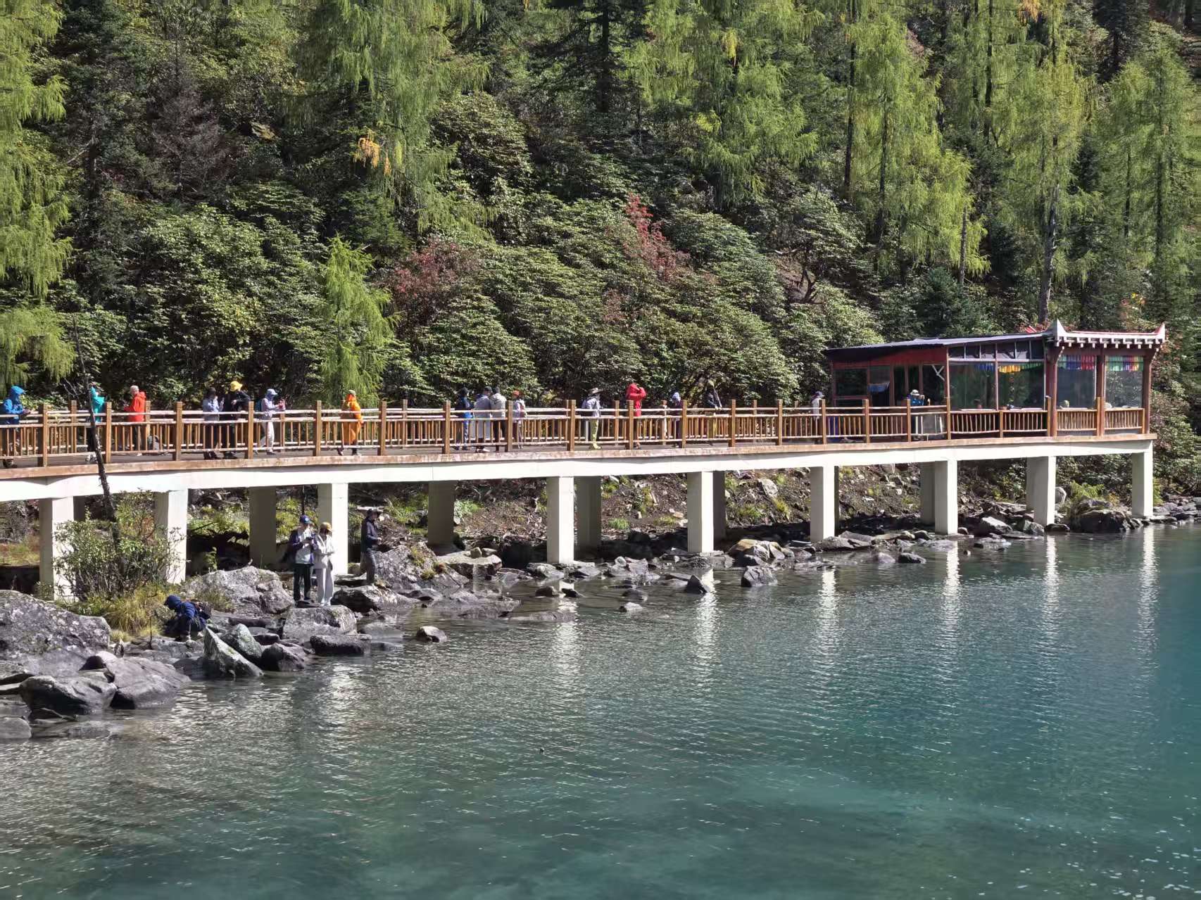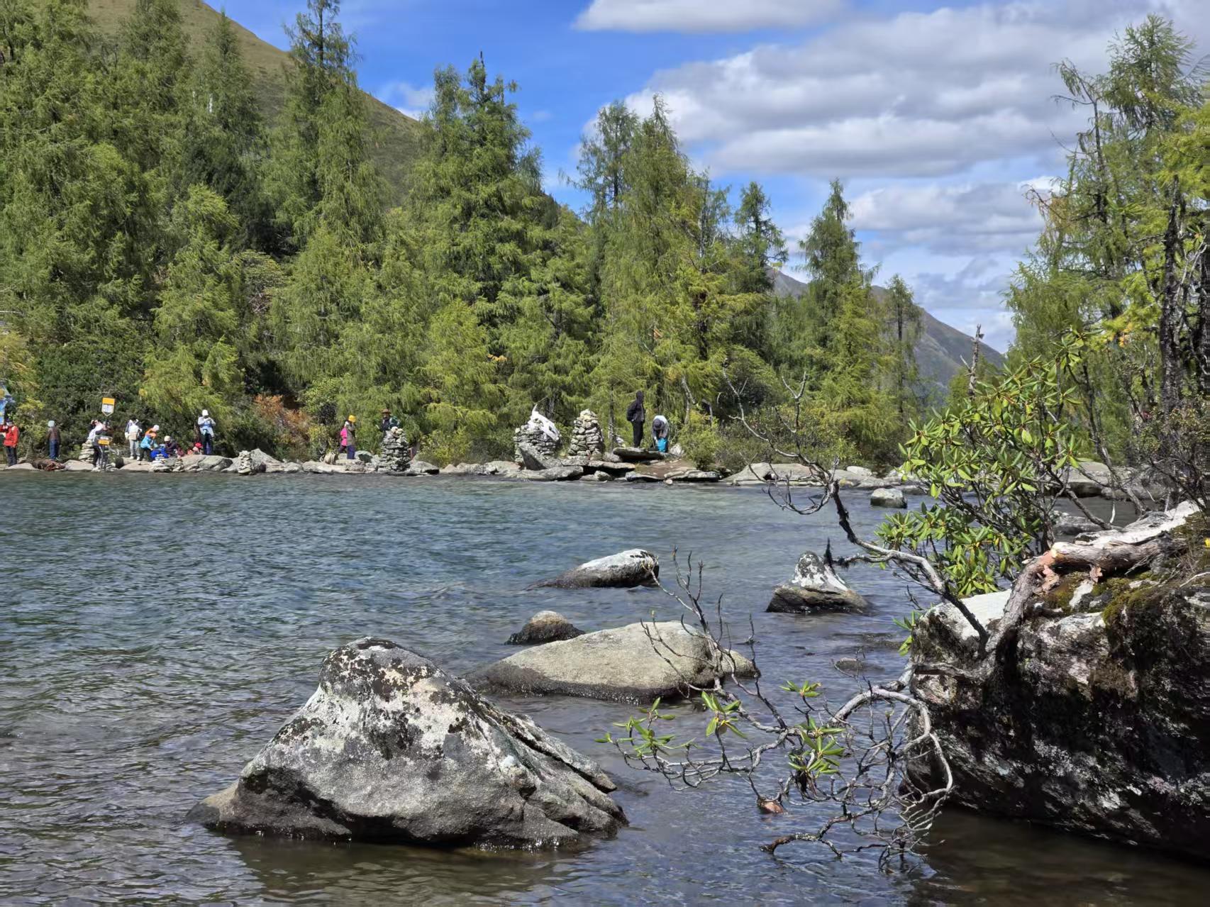 早餐之后乘车前往党岭村,徒步甲依拉措,夏秋季节的时候湖水呈现乳白色,所以被称为牛奶海。甲依拉措与葫芦海隔山相望。最后回到党岭村。