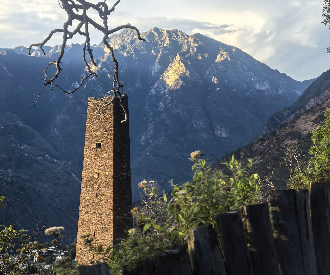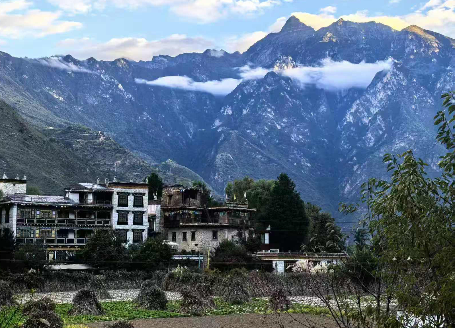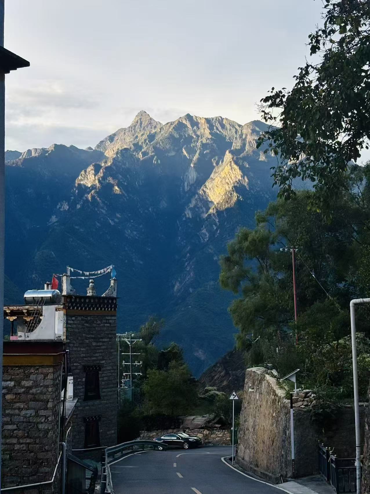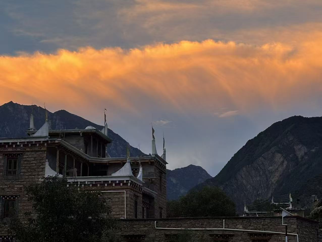 在中路藏寨,可以看日出、日落和夕阳。