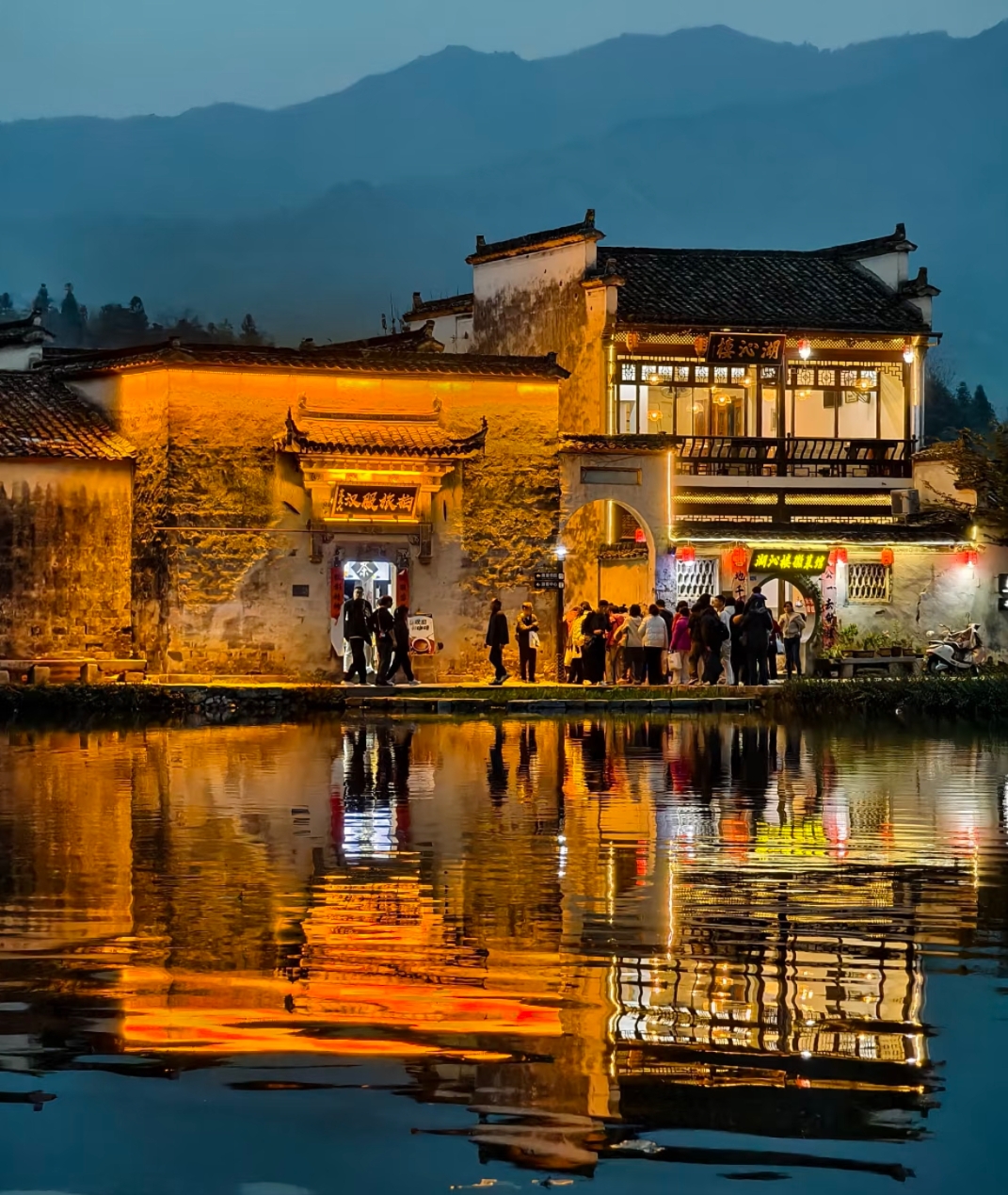 午餐后,乘车前往宏村,先到酒店入住,然后游玩宏村,从下午一直到晚上。宏村正常需3-4个小时,晚上看鱼灯巡游。晚餐可在景区内用餐,也可出来用餐。门票可多次进入景区。