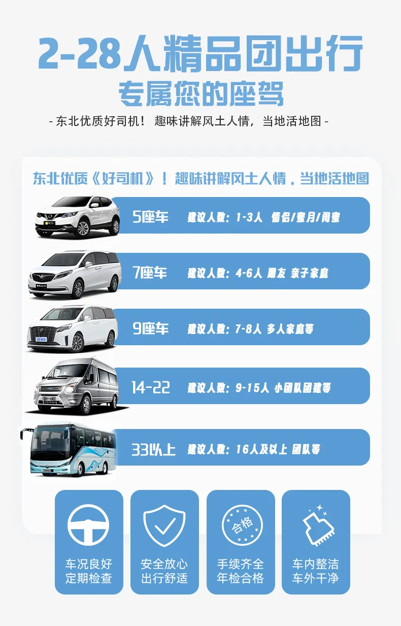 1、大交通:到东北的往返大交通自理,哈尔滨集合,吉林解散。提早订机票会便宜很多;