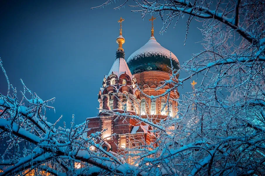 上午:抵达哈尔滨后入住酒店,稍作休整后开始探索这座冰雪之城。推荐首先前往【圣索菲亚大教堂】,这座拜占庭风格的建筑在白雪映衬下格外庄严,可在广场上喂鸽子,感受异国情调。
