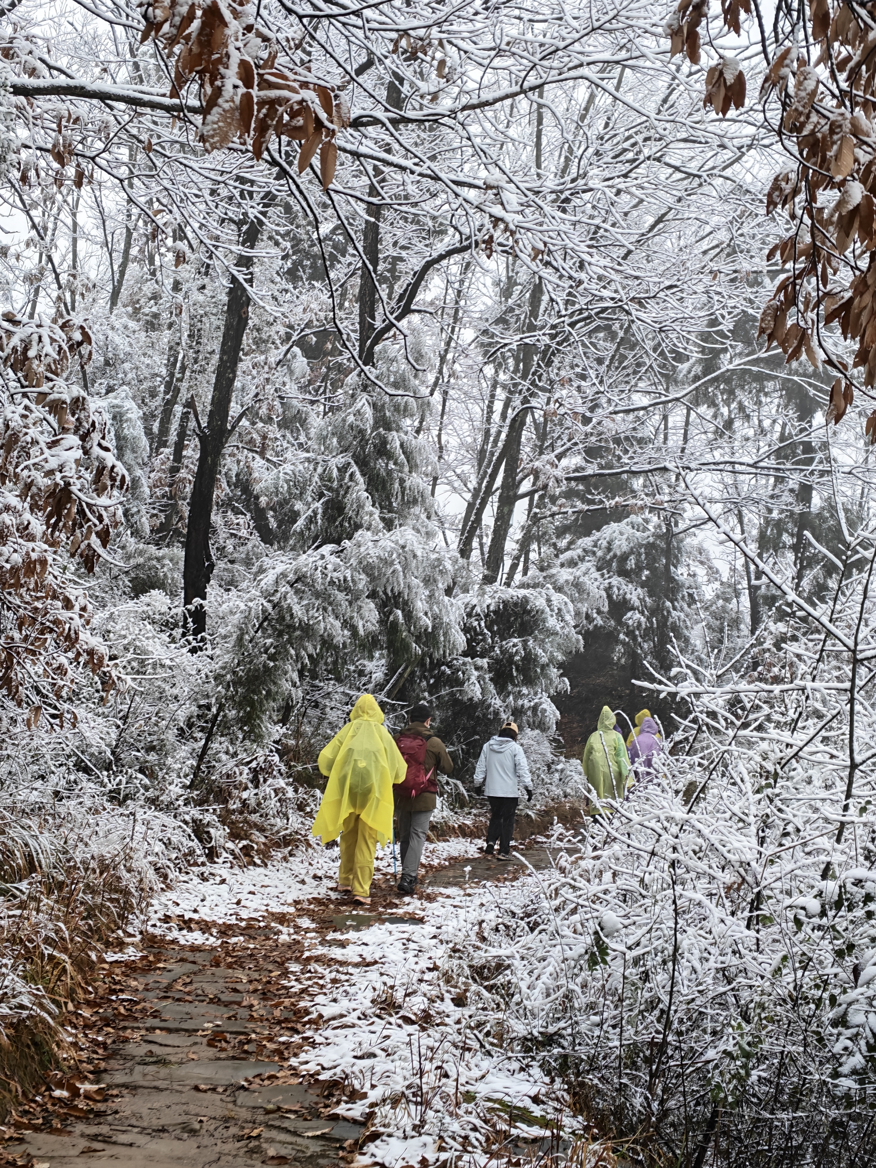 3、除了古道,还有沿途自然景观,春天很多油菜花及梯田,梨花、桃花、樱花、油菜花等,共同构筑了一条经典的徒步线路,徒步的路上还能够看到剑门关景区所在的大剑山。冬天有可能邂逅雪景雾凇,今年元旦就遇到了雪景。