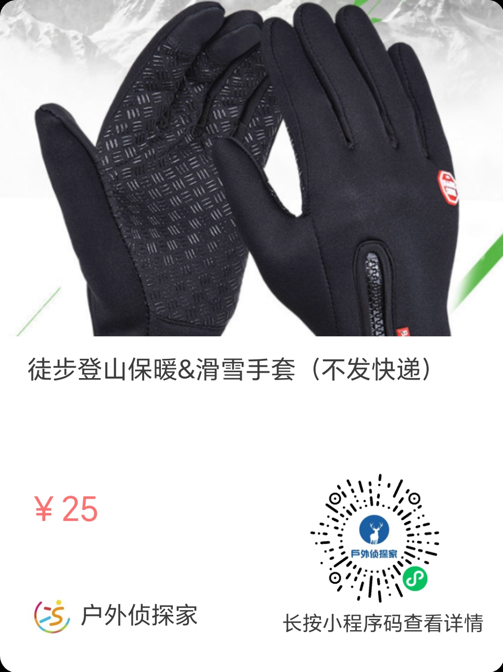 另外有户外侦探家自营滑雪手套等,可识别小程序码或者前往商城下单