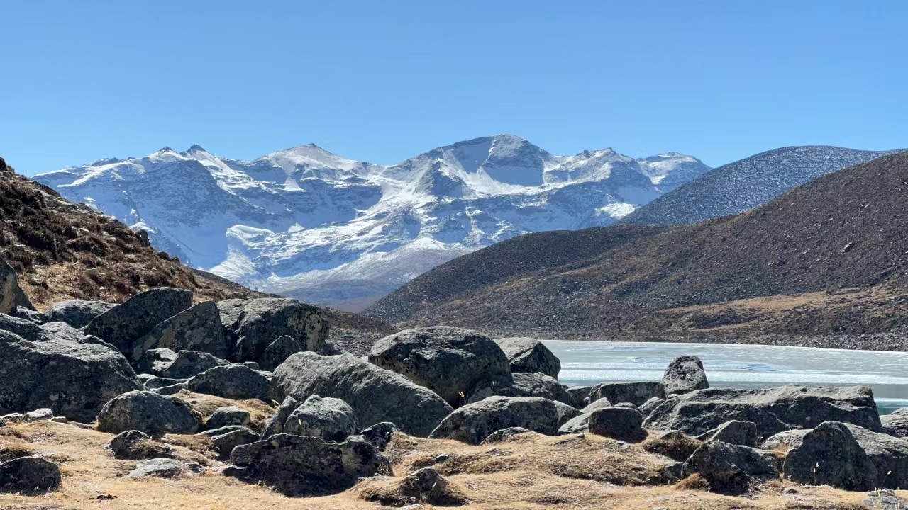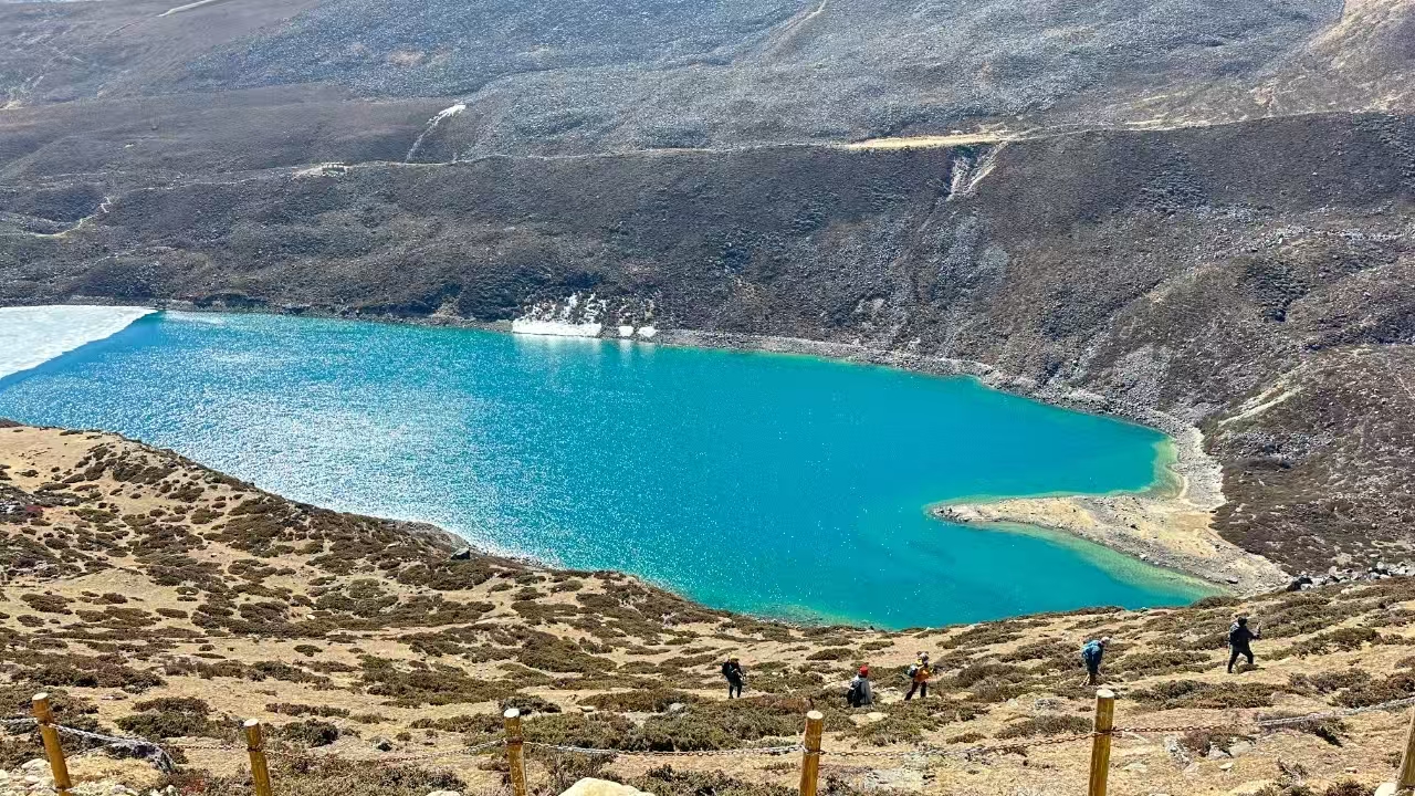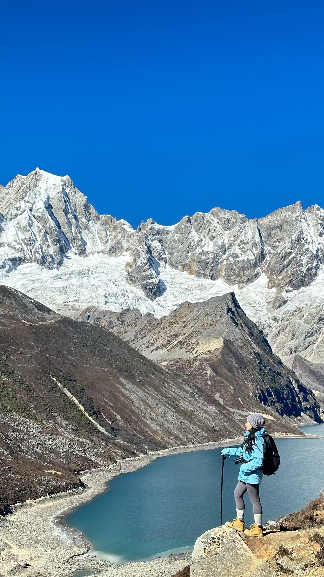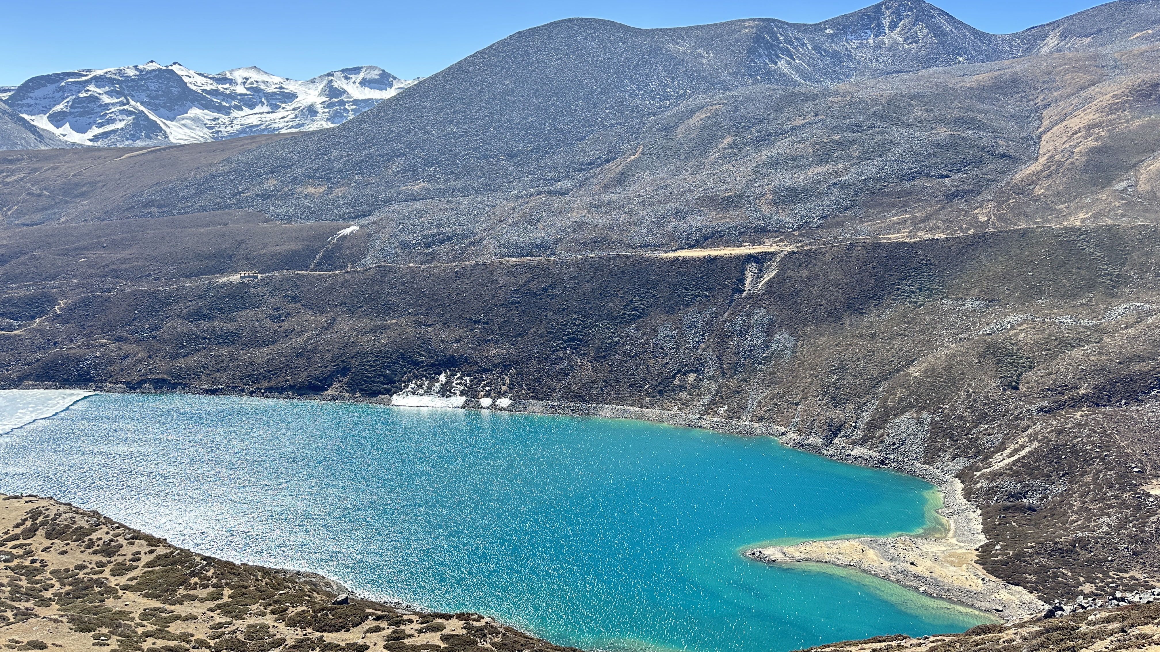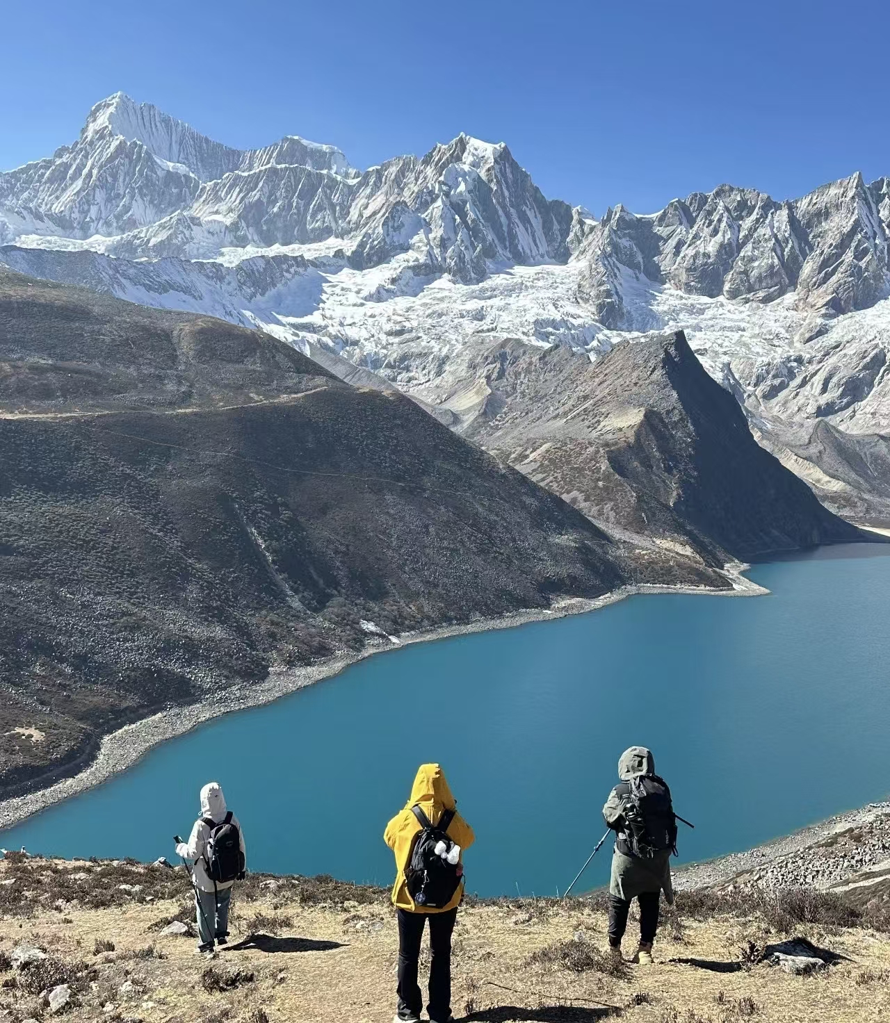早餐后出发,今天的徒步目的地是欣赏折公措,一路从4500米爬升到5000米左右的海拔,站在高处远眺折公三措(又叫三神湖)。、