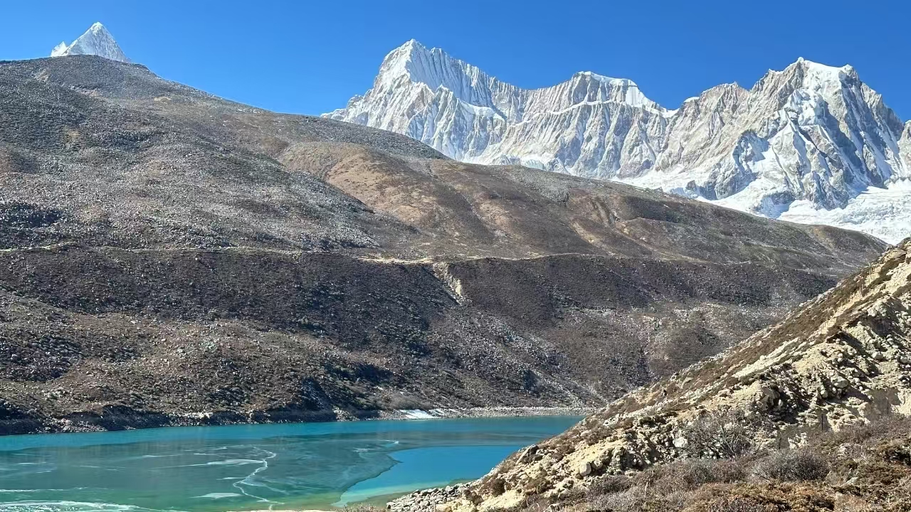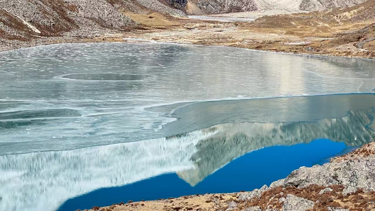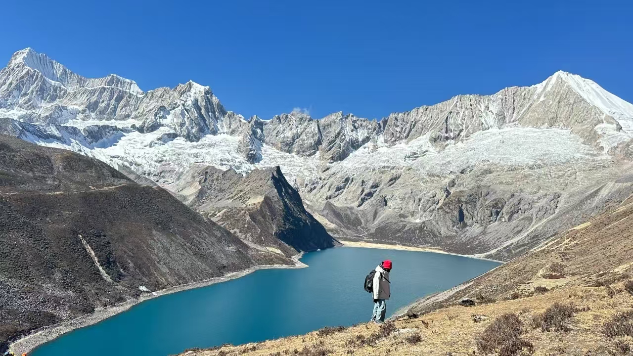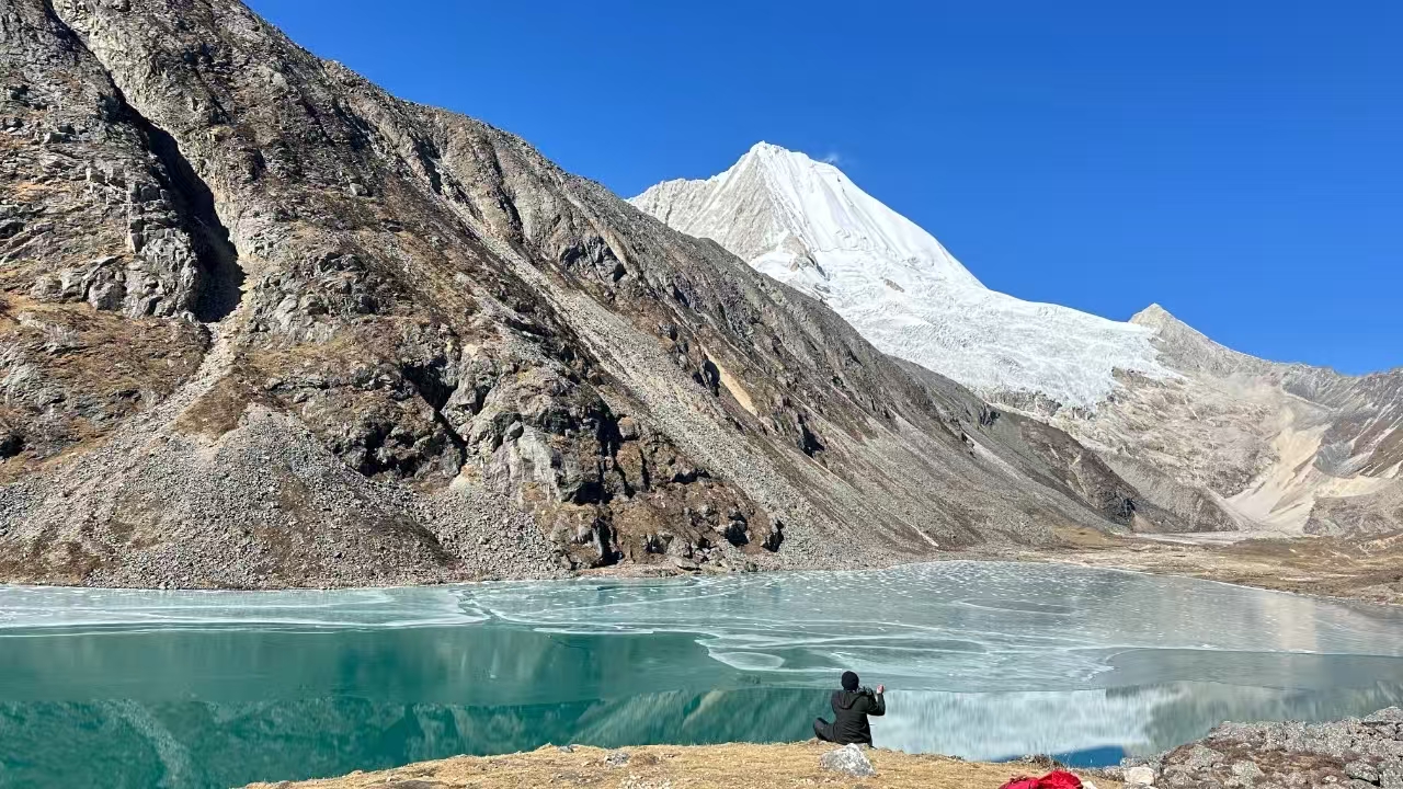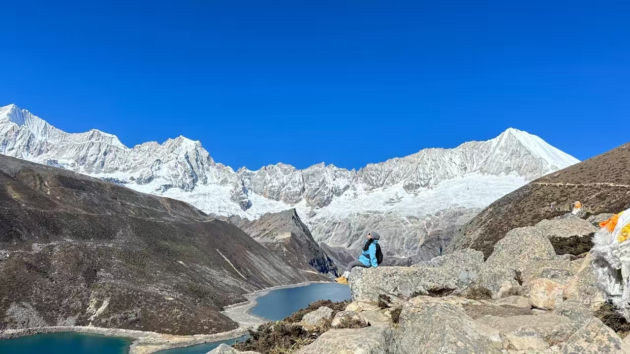 早餐后出发,今天的徒步目的地是欣赏折公措,一路从4500米爬升到5000米左右的海拔,站在高处远眺折公三措(又叫三神湖)。、