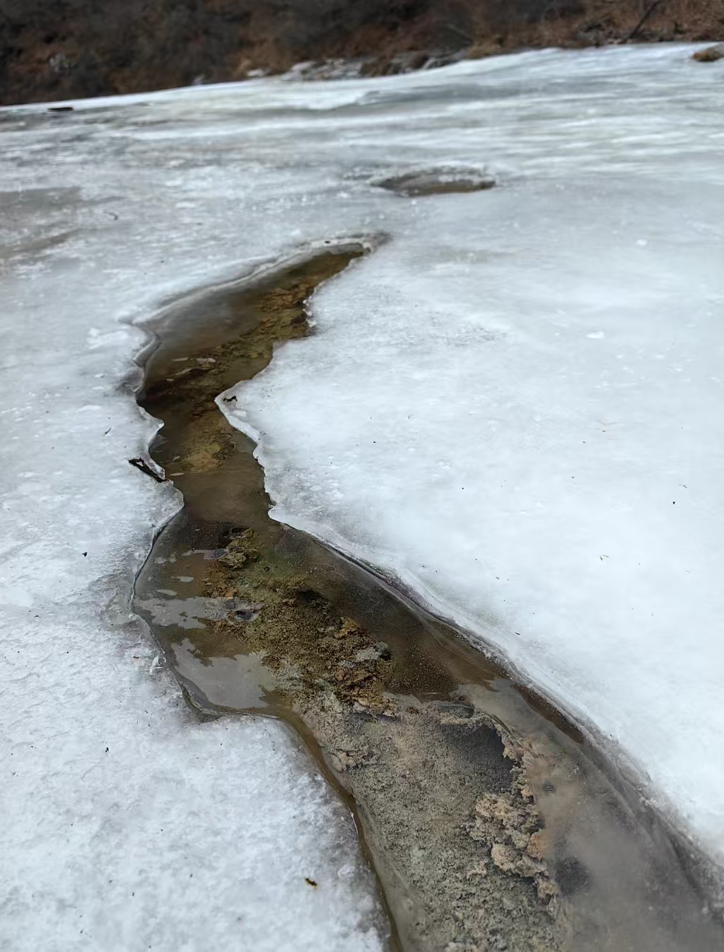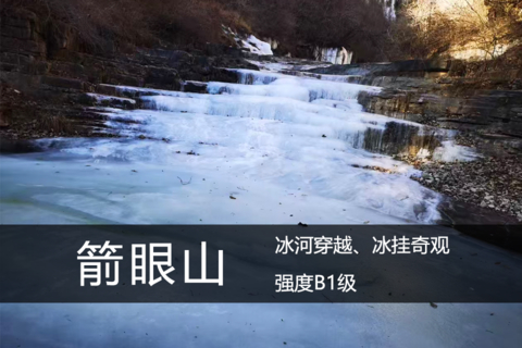 箭眼山里有一条沟,实际上是云台山小寨沟的上游,四季水流不断,由于海拔高,温度比较低,溪流全部结冰,形成了冰河: