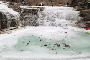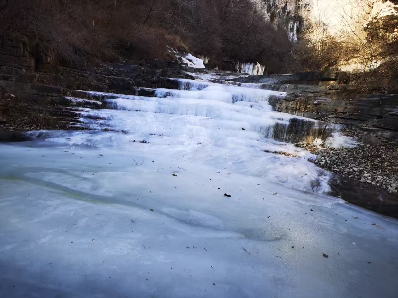 1、峡谷冰河,这里位于云台山的小寨沟上游,夏季有小溪潭水,冬天变成冰河、冰瀑及冰挂
