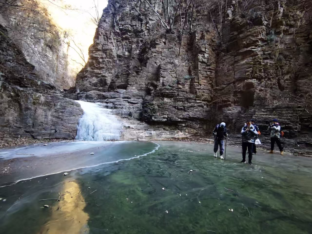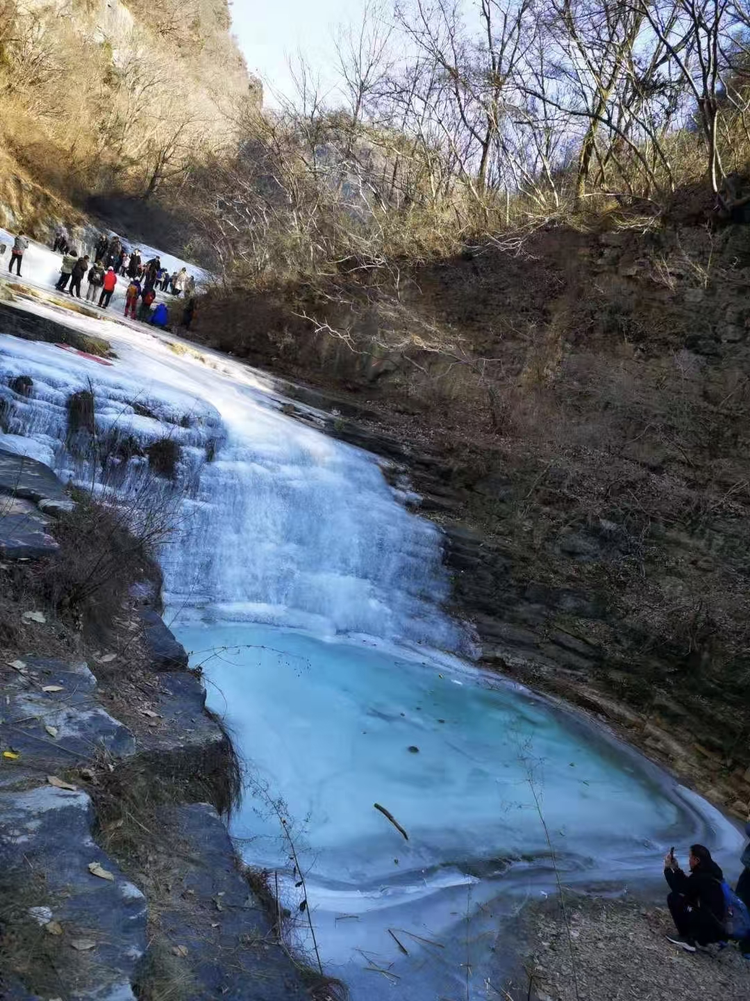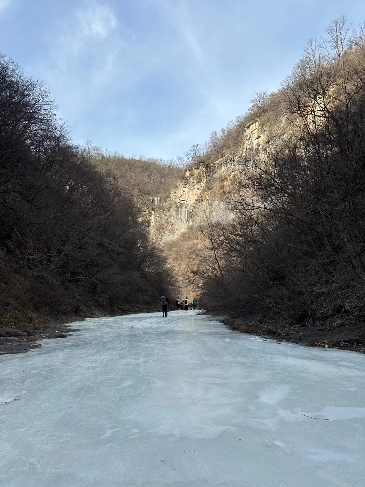 路上也有不少冰挂,冰挂其实是岩壁的水不断往下留或者滴形成的,距离冰挂要有一定距离,有的冰挂可能突然掉下来