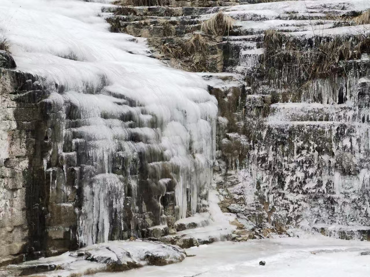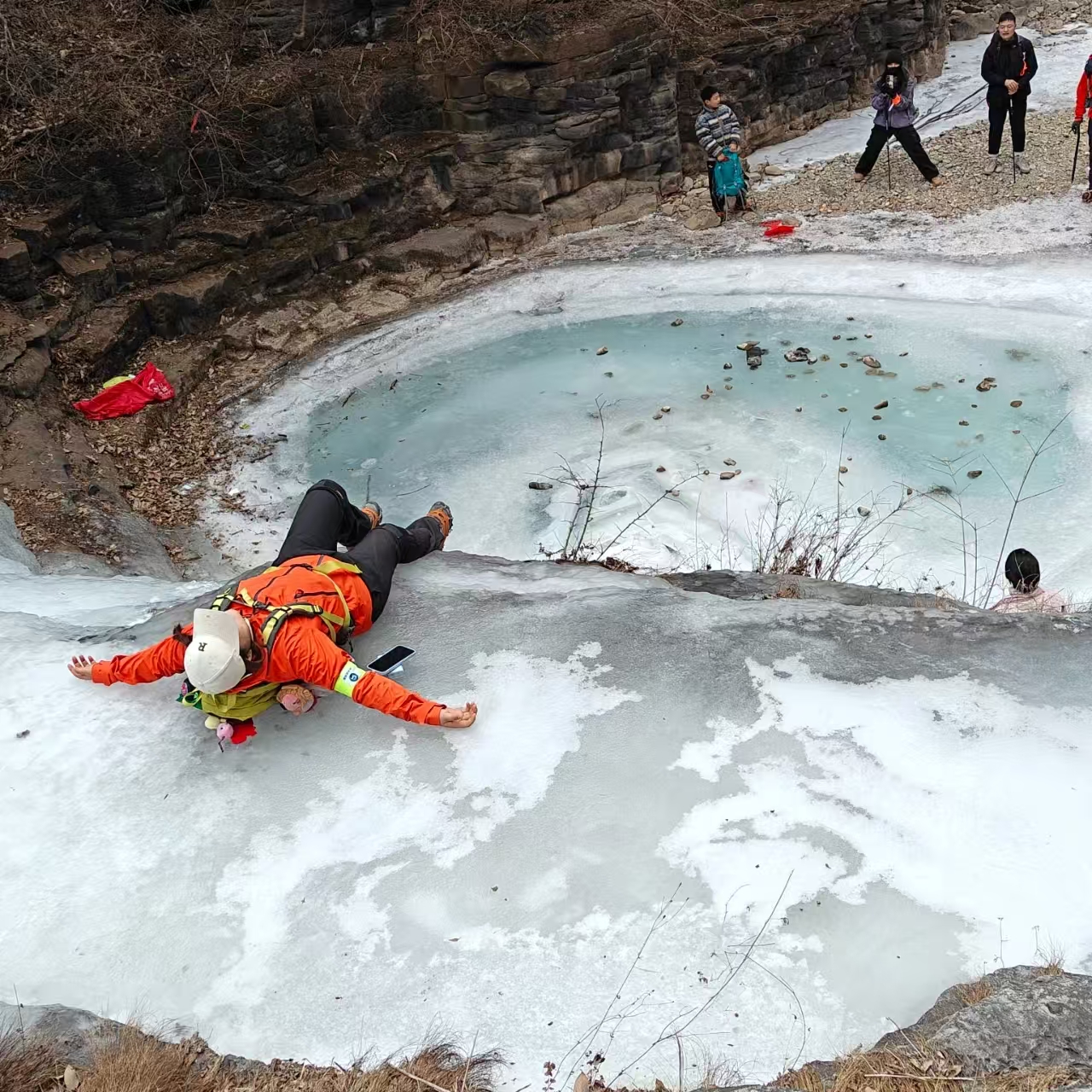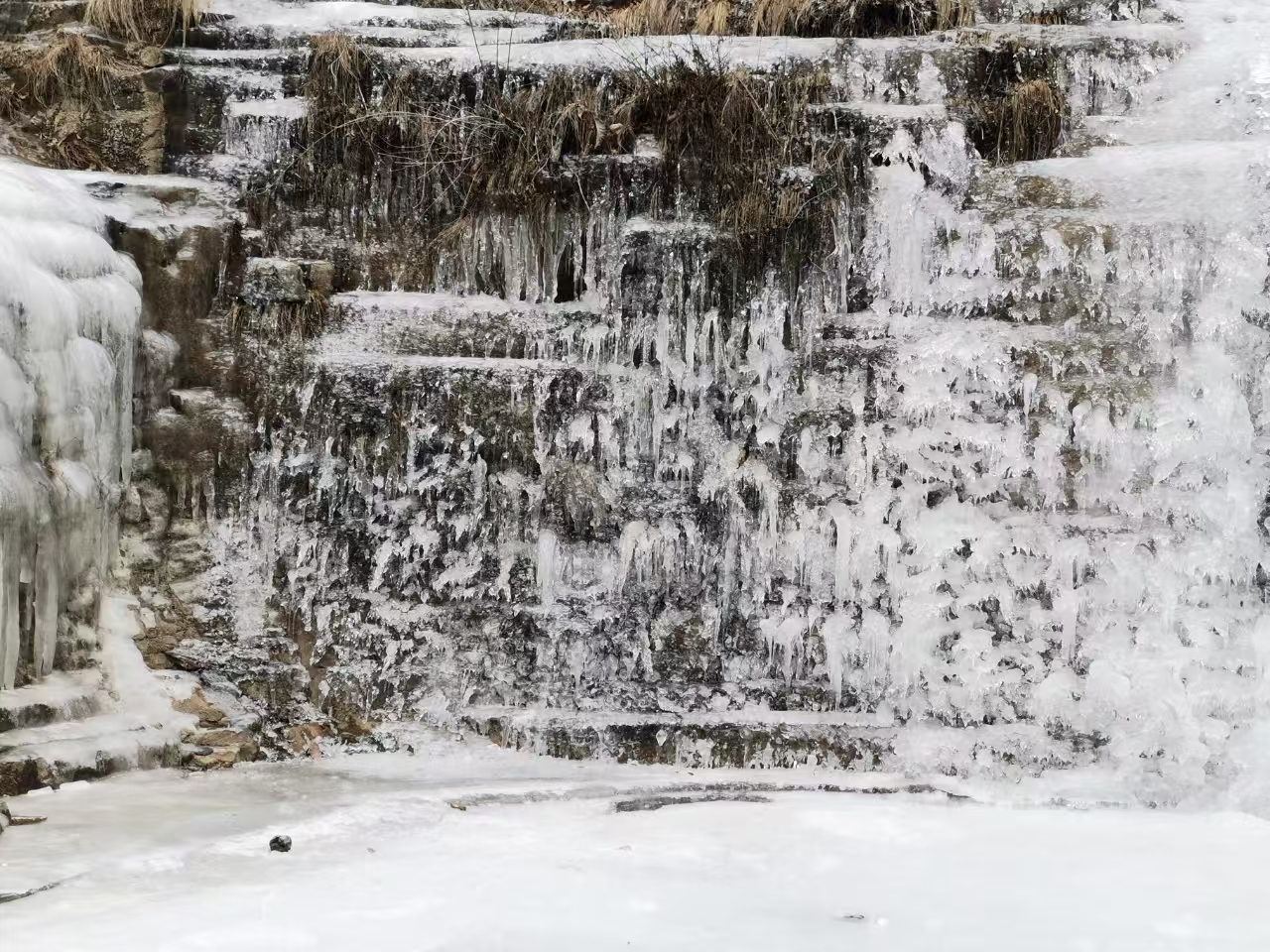 路上也有不少冰挂,冰挂其实是岩壁的水不断往下留或者滴形成的,距离冰挂要有一定距离,有的冰挂可能突然掉下来