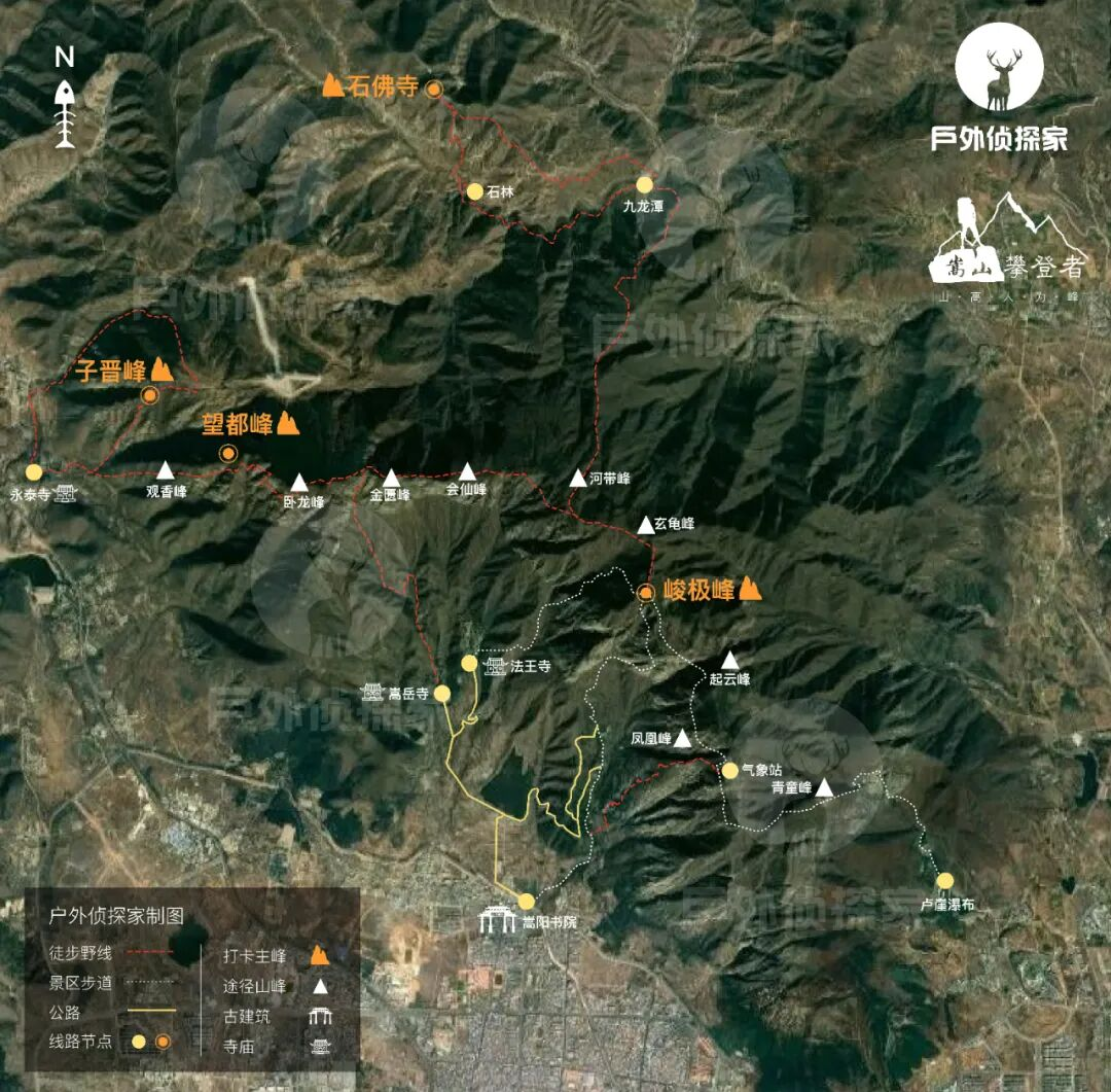 嵩山经典穿越登嵩山之巅,C级强度,有挑战 大概率雪景