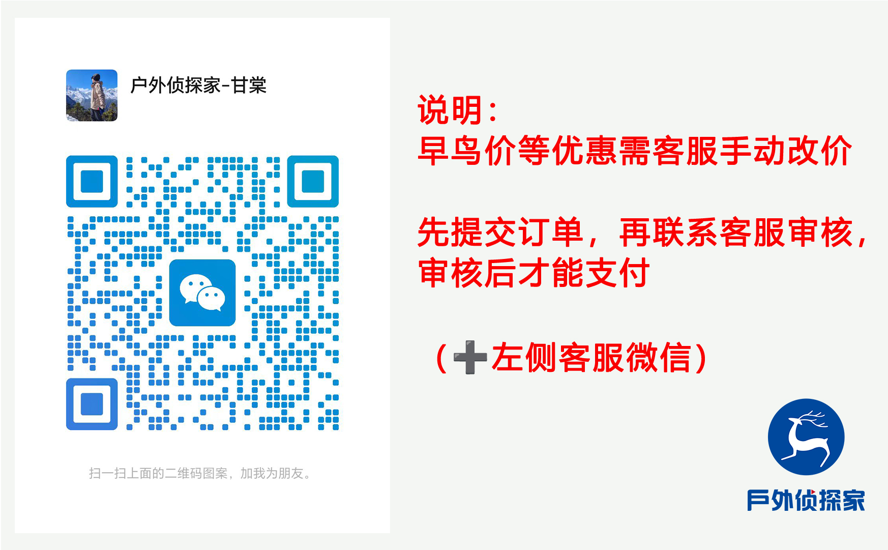 说明:户外徒步线路,不适合普通游客。风景很好,体验也可能很好,但也可能很累(也有人感觉轻松)。不适合想要享受的人群,我们也不提供保姆式服务,需要每人有一定的自理能力,同时不能做影响其他队员的不当行为。我们的目的是打造省心、放心的服务体验,让真正想要出去玩的人感到舒适、可靠,一个人也可以参加活动(其实一个人参加活动的比例很高)