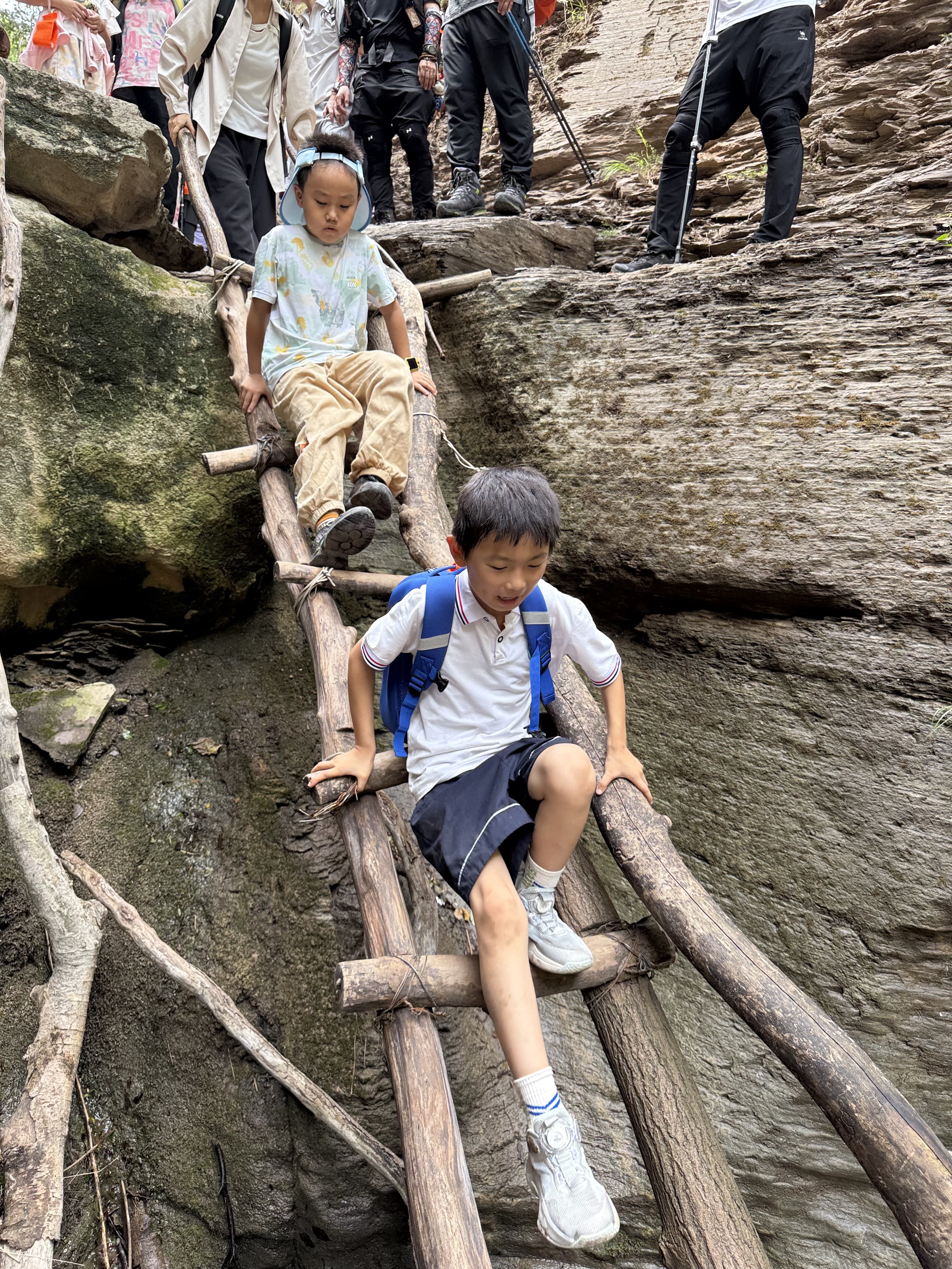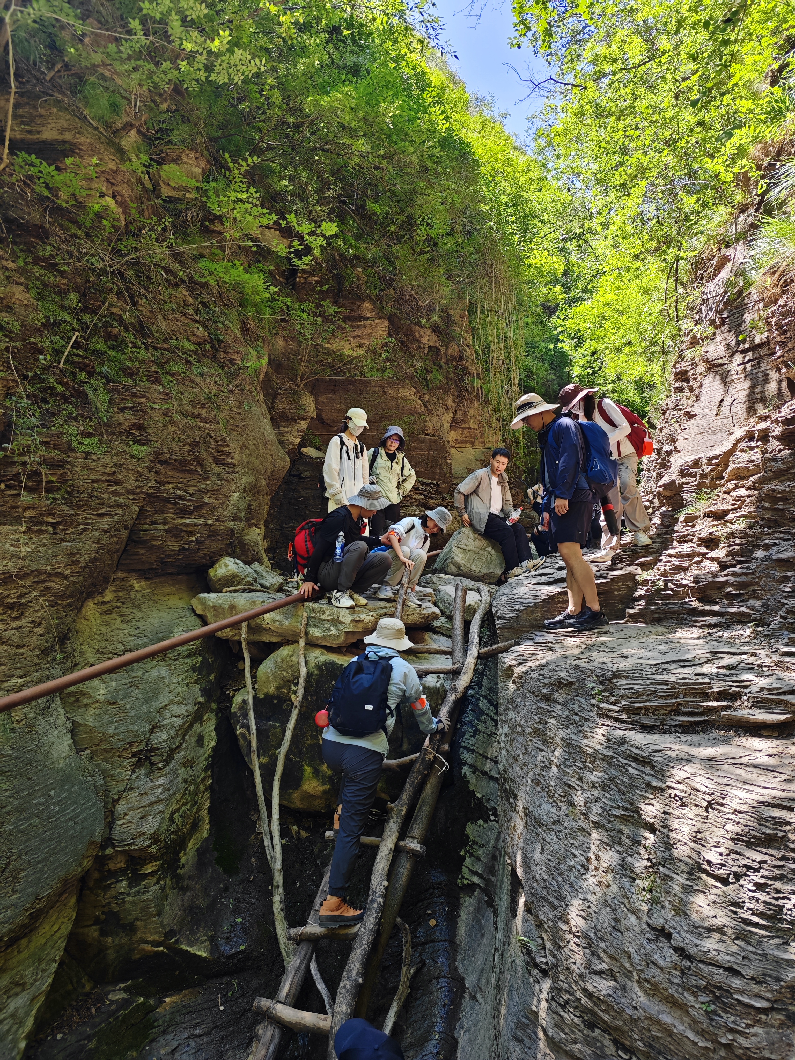 然后我们沿着曲折蜿蜒的峡谷,还需要攀木梯