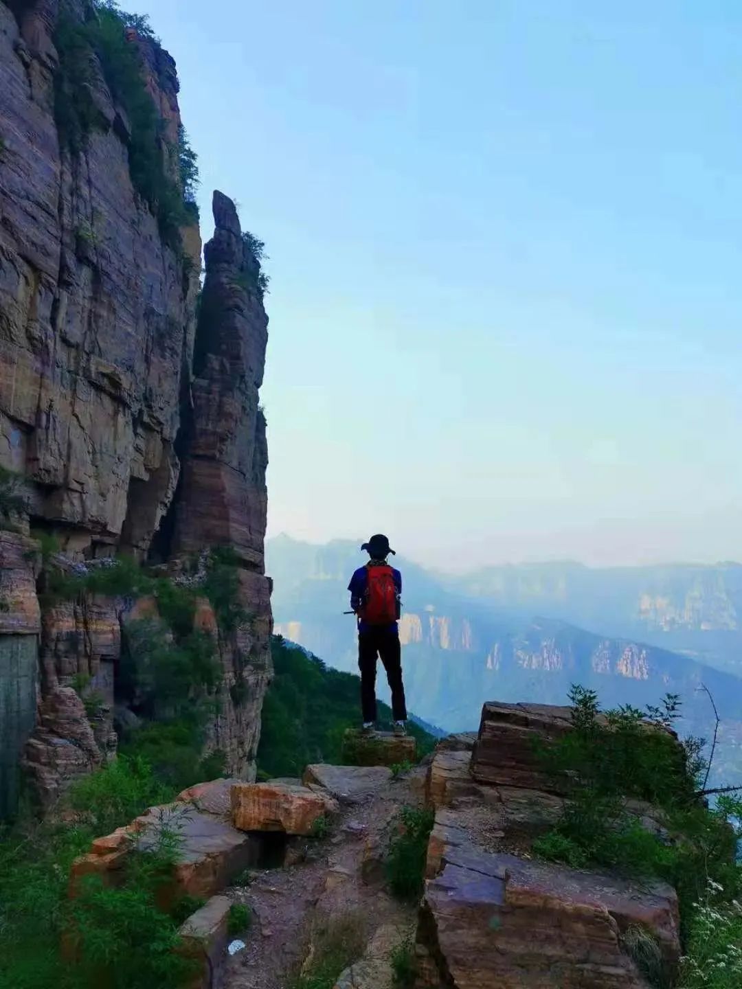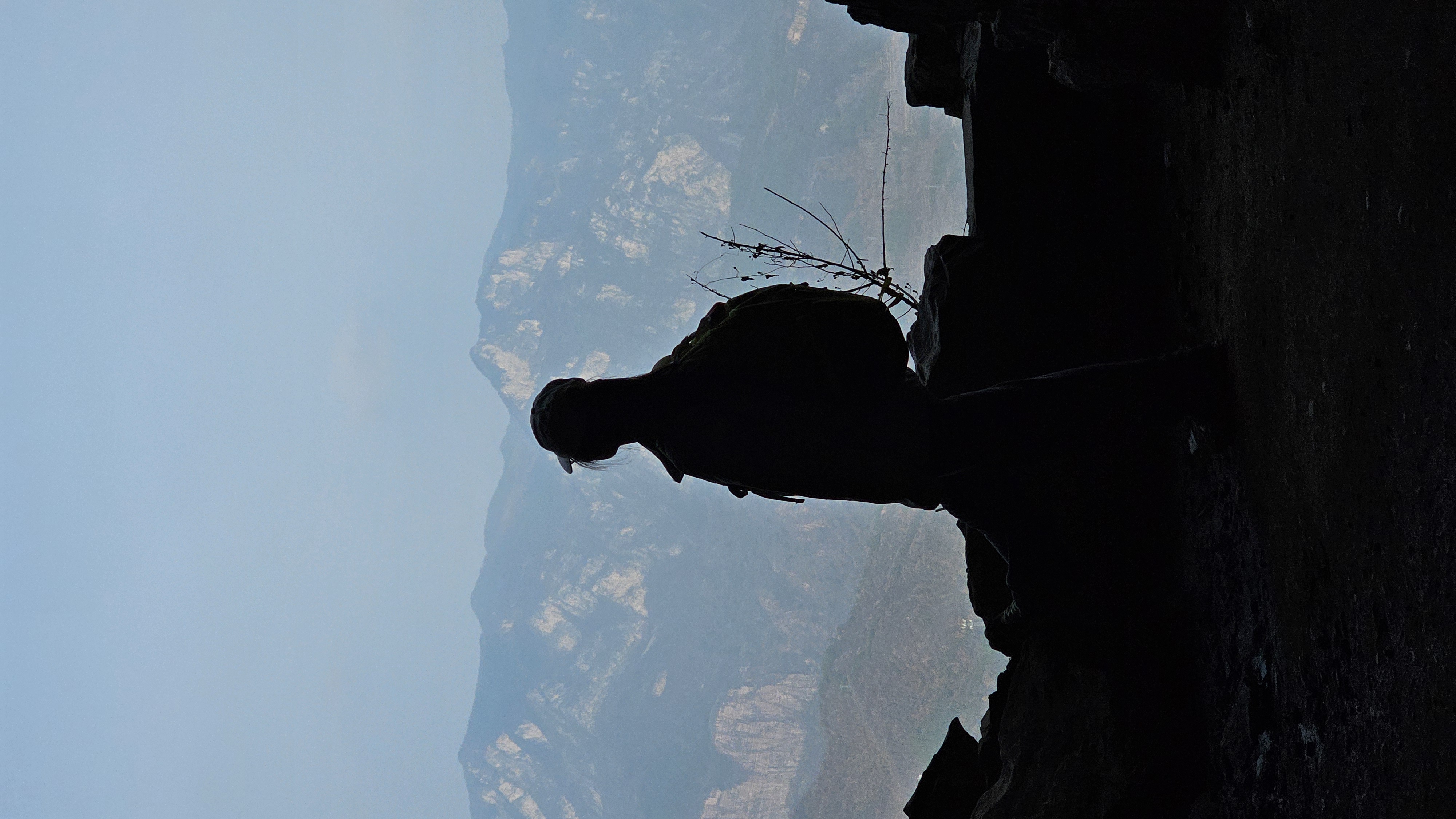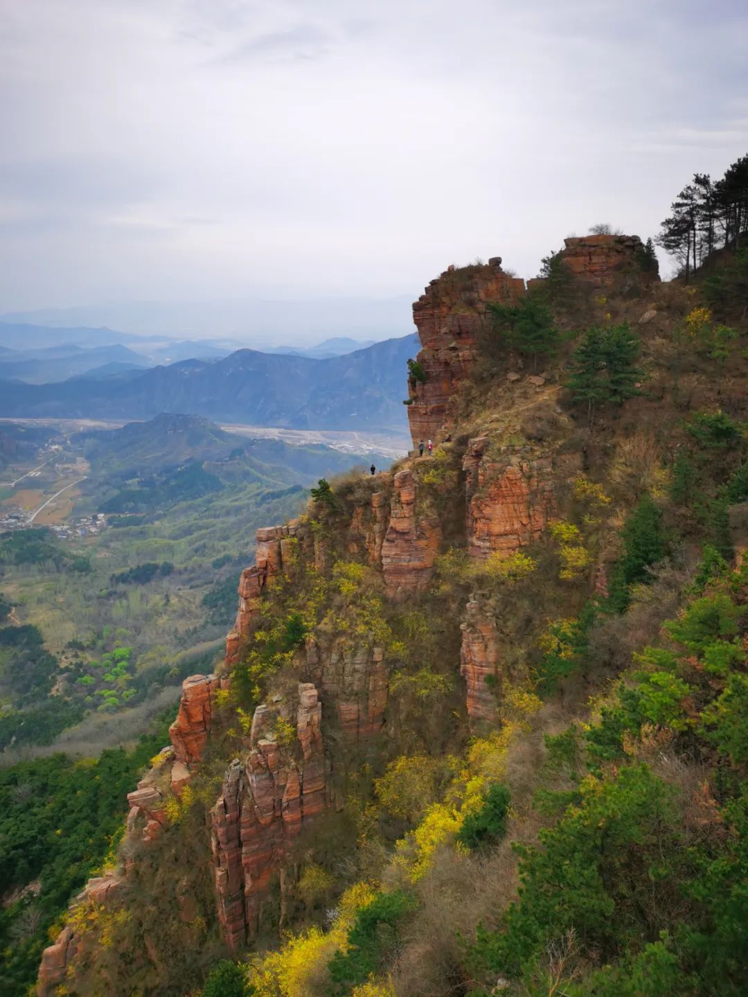 此次我们找到了罗姐寨更佳的徒步线路,从罗姐寨穿越到上腊江村,会经过一段南太行二层的崖上平切线路,风景优美,视野开阔,能览罗姐寨全景: