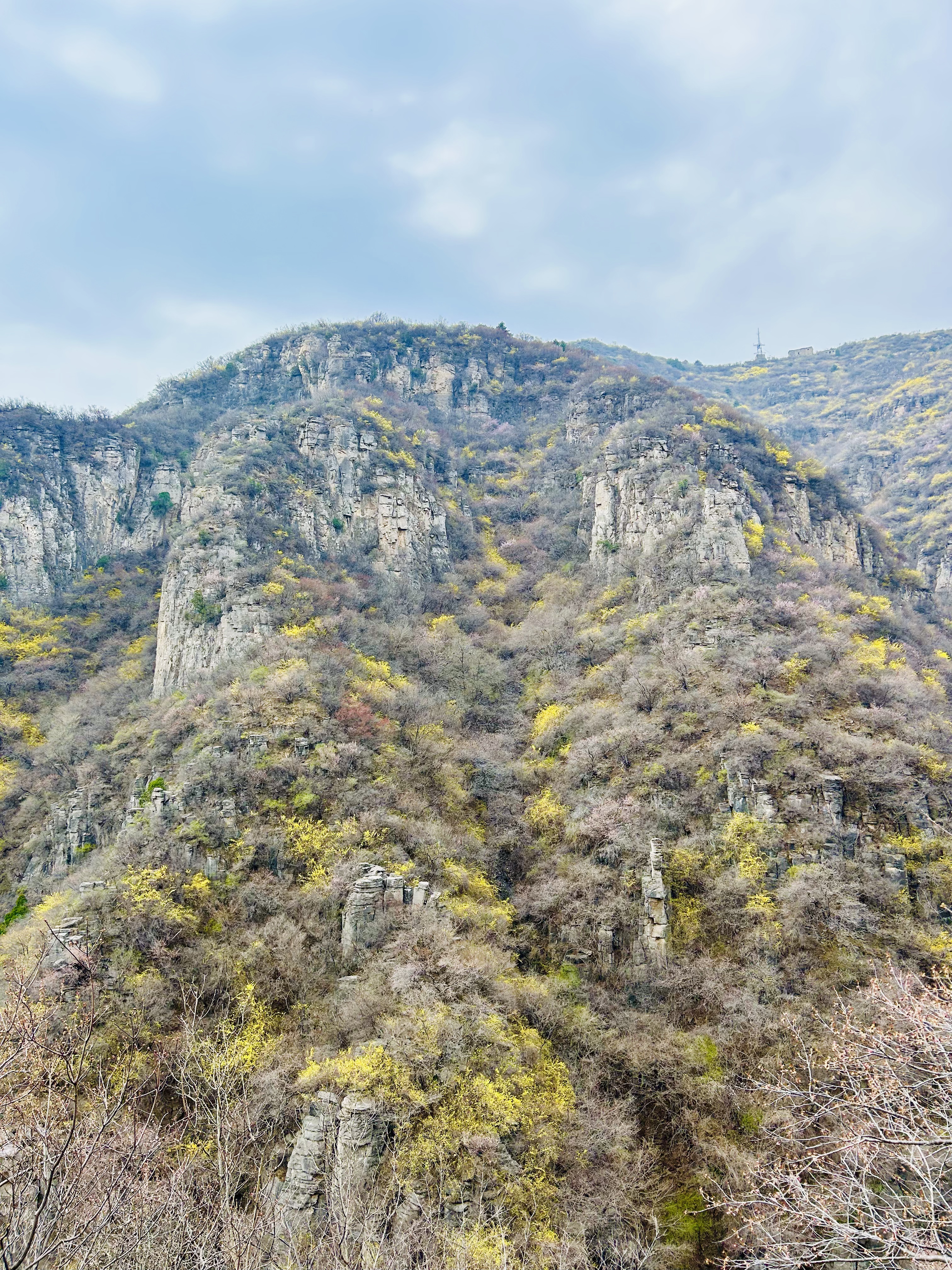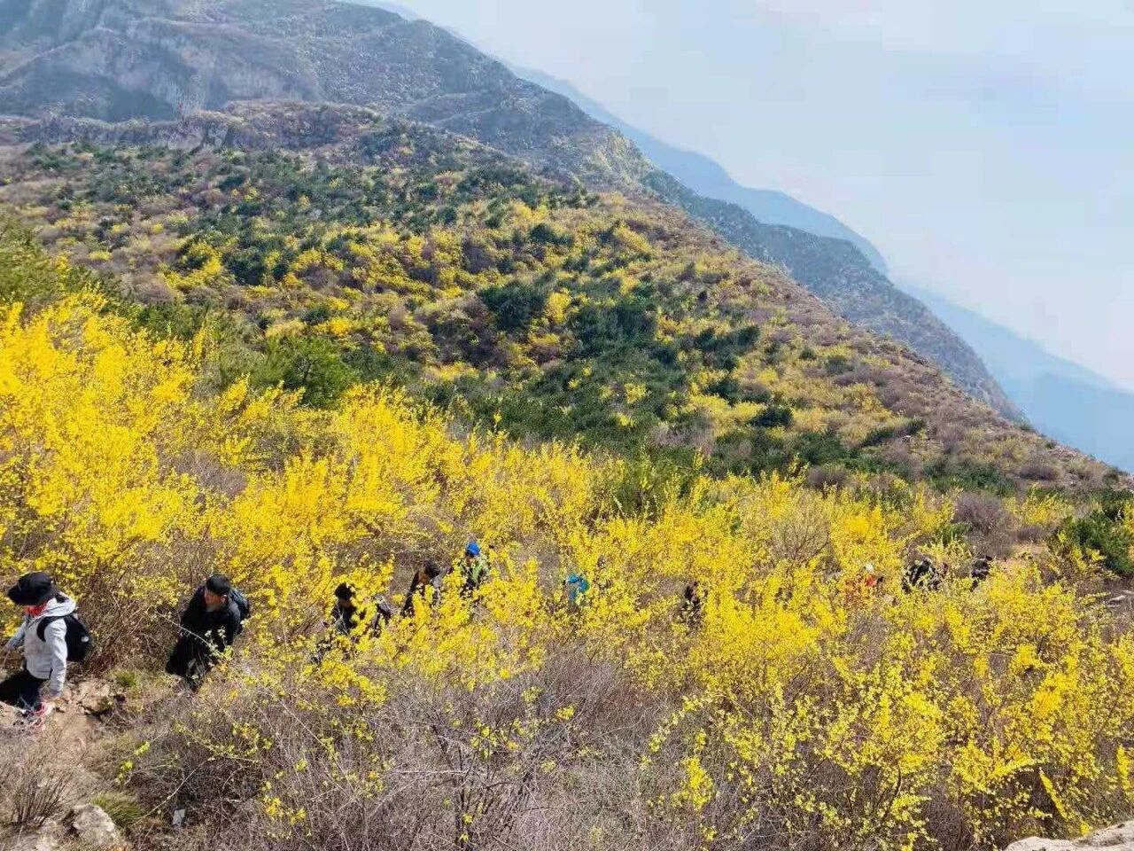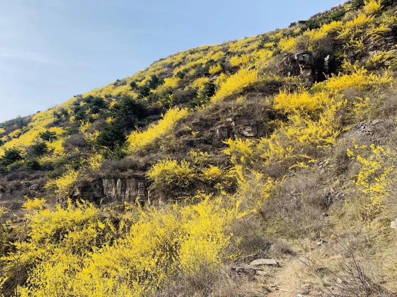 太行山上有很多野生连翘,也有连翘种植基地,连翘是重要的中药材。每到三四月份,太行山的连翘就会开放,一片金黄。由于这里海拔相对较低,连翘也最早盛开。