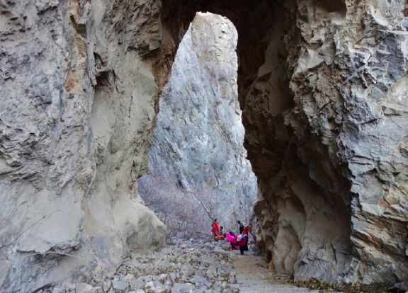 手扒岩一段并不长,只有几米高,其他为台阶,远看:从手扒岩上去,是一个天然的石门,当地人称之为“天门”,最后一段通往天门的梯子被称为“天门梯”。天门这里是取景的好地方。