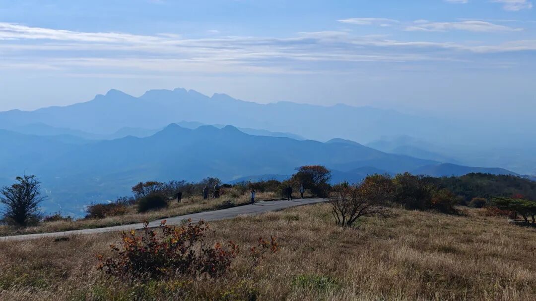 在草甸可以看少室山全景: