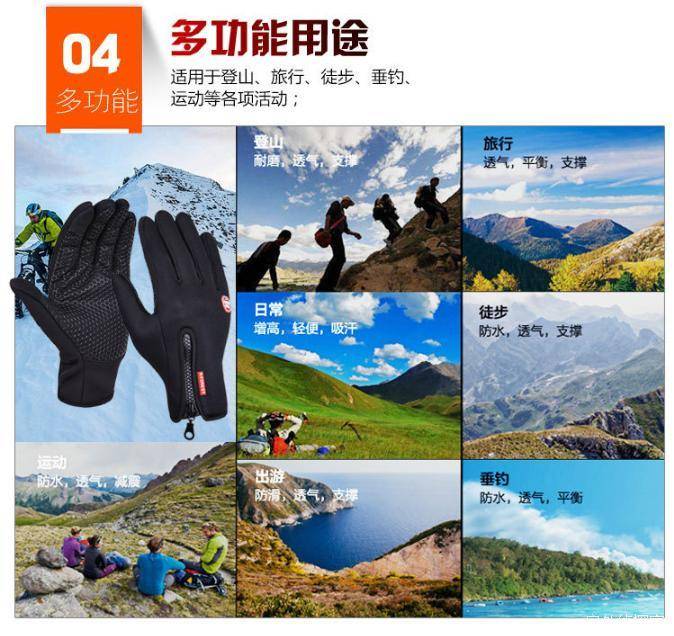 该款手套主要用于保暖,适用于冬季登山徒步,滑雪等,但并不适用于极寒天气,比如高海拔冬季登山使用
